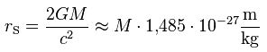 Weiterhin ist der Schwarzschildradius, also die Grenze an der kein Licht mehr einem Schwarzen Loch entkommen kann, direkt von der Masse des Schwarzen Lochs abhängig.